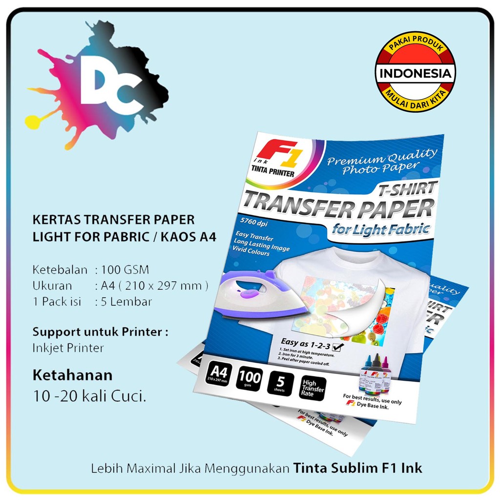 Kertas Transfer Paper Light For Pabric Kaos Ukuran A4 Isi 5