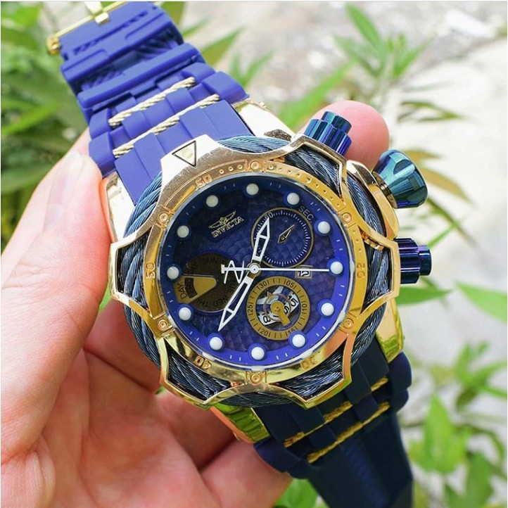New 52mm Invicta Reserve Bolt Hercules Blue Dial All Gold Tone
