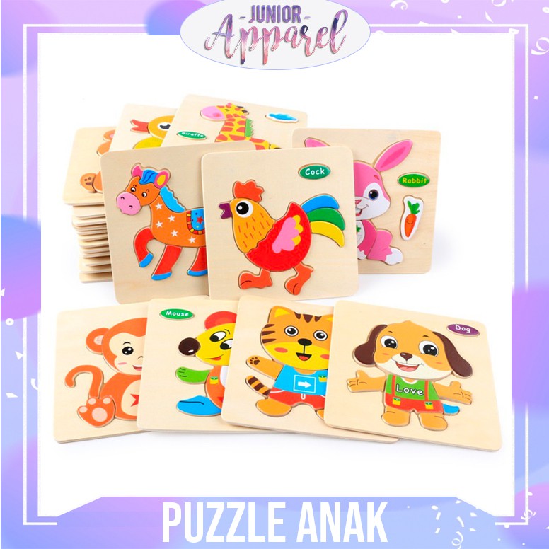 Junior Apparel Puzzle Kayu Kecil Hewan Transportasi Mainan Edukasi