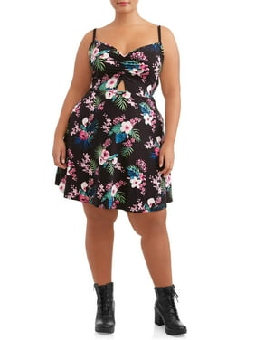 Buy products such as no boundaries juniors plus size v neck tie front dress at walmart and save. Stay comfortable during a long school day with a simple knit dress in a fun print. Xtraordinary plus spaghetti strap illusion caviar beaded bodice tulle skirt gown.