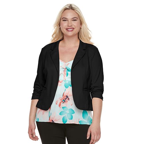 Juniors Plus Size Candie S Ruched Lace Knit Blazer