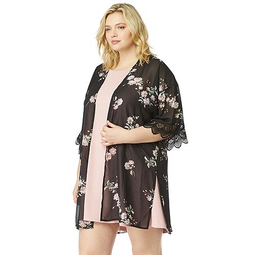 Juniors Plus Size Wallflower Solid Dress Printed Kimono Set