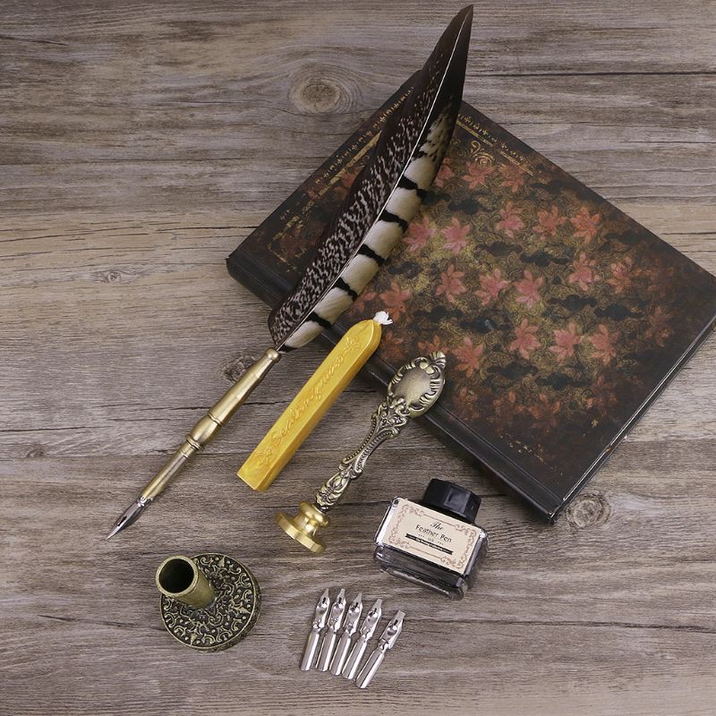 Run Beautiful Feathers Pen Vintage Feather Dip Writing Ink Pens