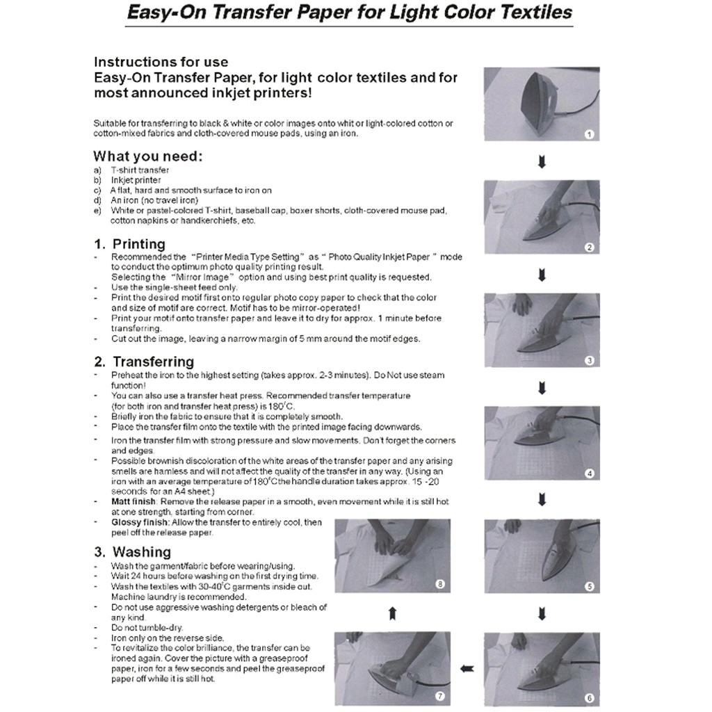 Iron On Heat Transfer Sheets Light Fabrics T Shirt Printed A4
