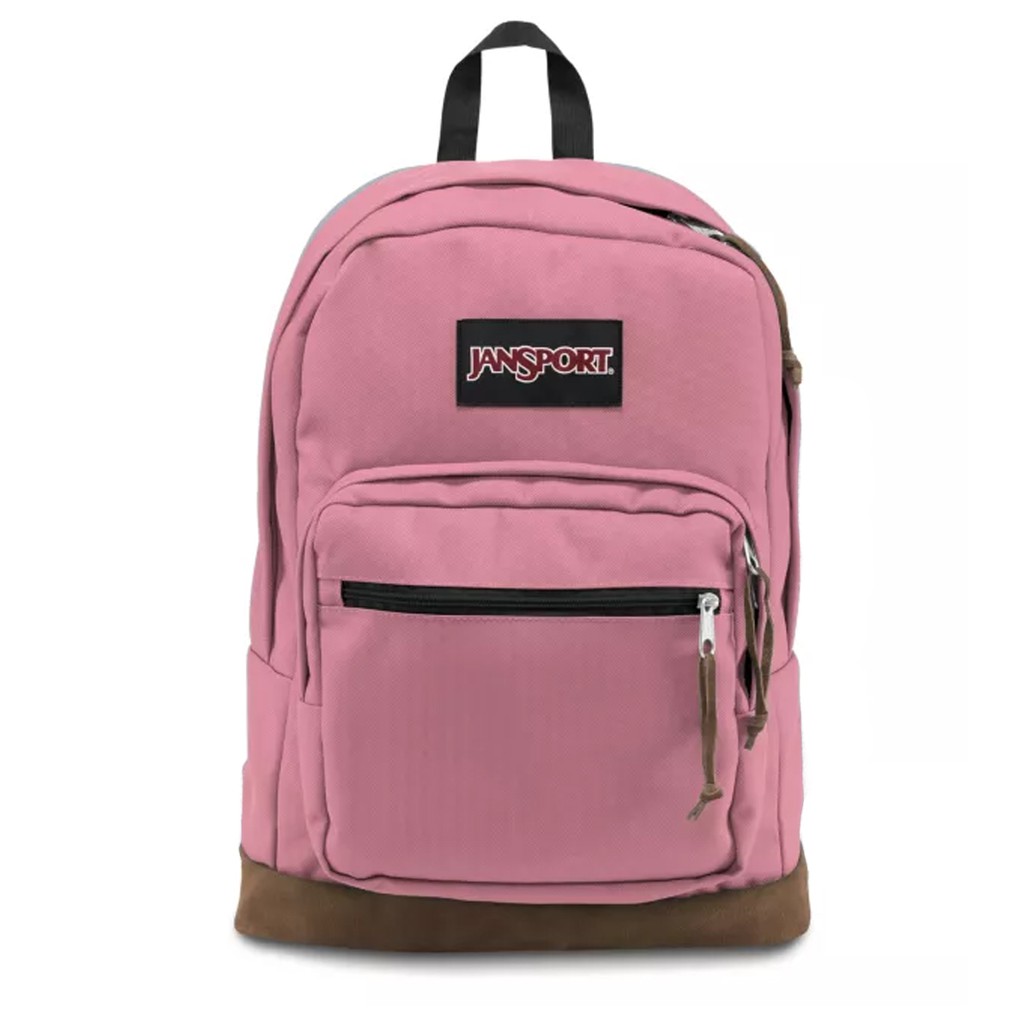 Jansport right pack. With an internal 15 inch laptop sleeve and front organizer pocket the right pack by jansport is sure to be the best backpack for wherever your day takes you. Accent your style with the trendy colors suede bottom of this modern pack and same durable and functional features we love. This backpack includes signature suede leather bottom 15 in laptop sleeve and front pocket with organizer.