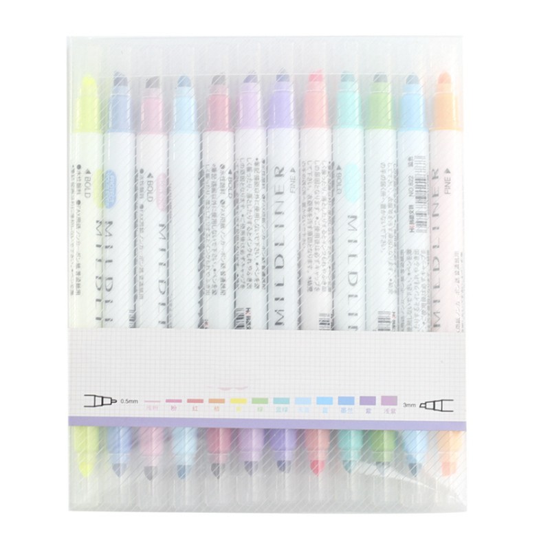 12 Pc Japanese Stationery Mild Liner Double Headed Fluorescent